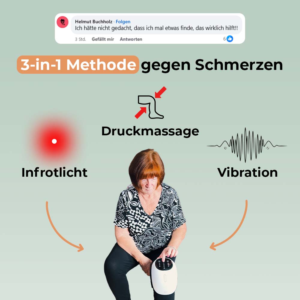 Hilft bei Knieschmerzen durch 3-in-1 Technologie (Infrarot-Wärme, Druckmassage und Vibration)